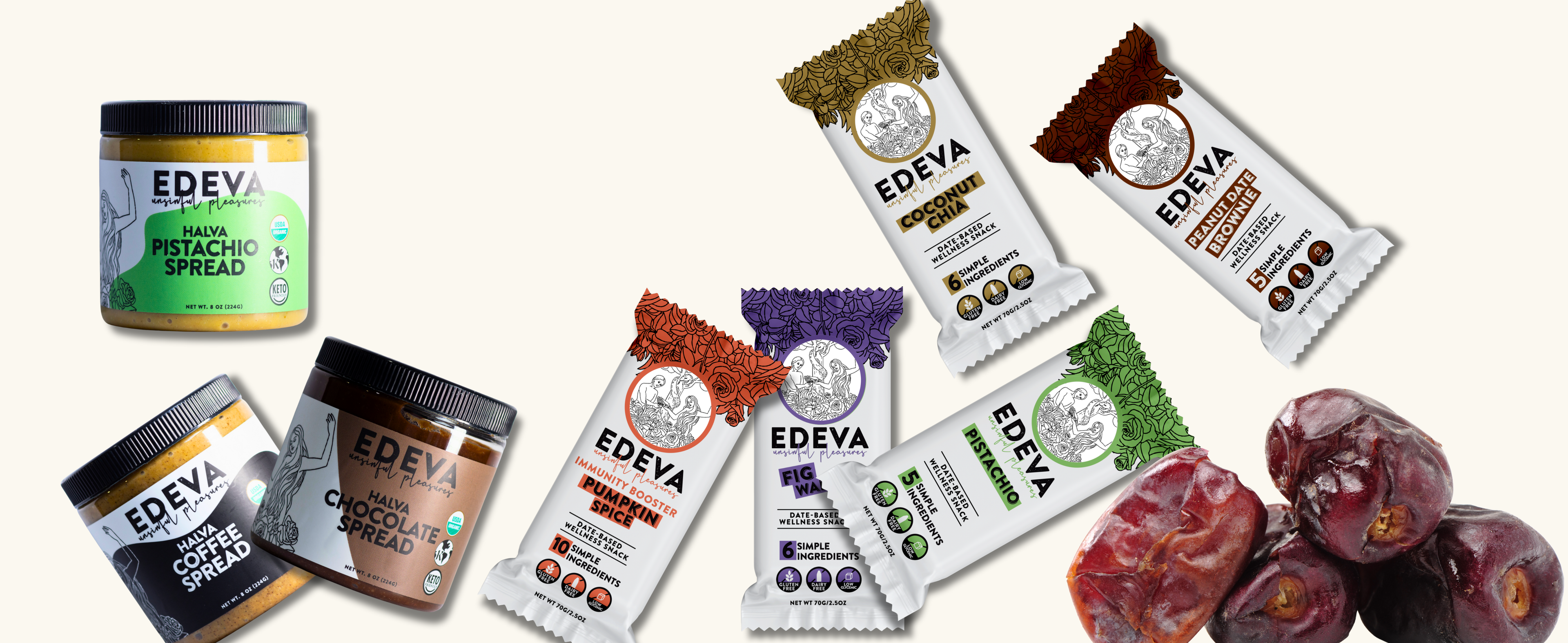 From energizing date bars to creamy, nutrient-rich halva spreads, each EDEVA product is thoughtfully crafted to fit beautifully into your everyday routine—helping you feel fueled, balanced, and inspired, one delicious bite at a time.