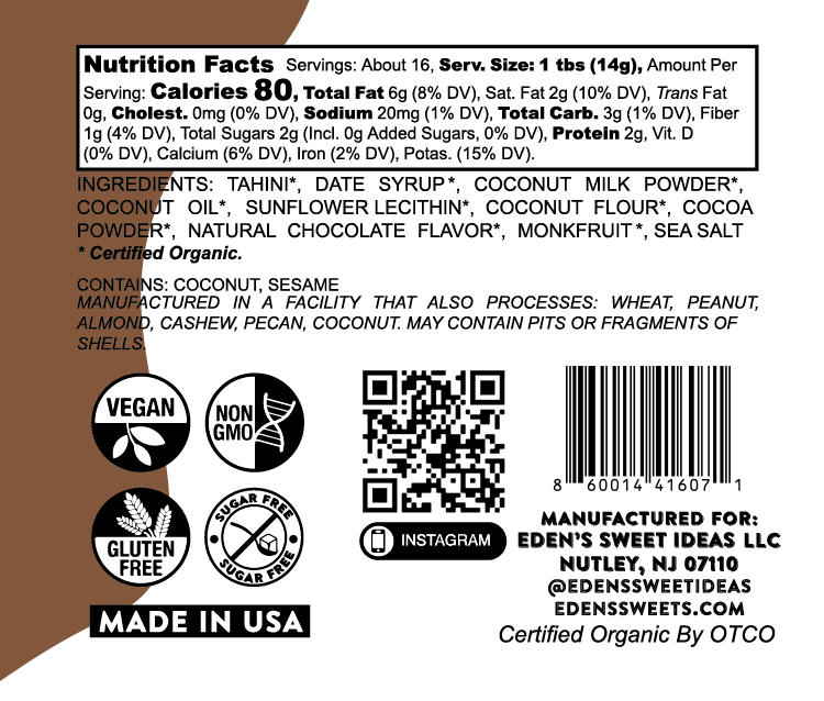 Imagine a decadent, creamy blend of tahini, dark chocolate, and coconut, transformed into an exquisite texture and flavor, with nutritional benefits from Edeva's wholesome garden. Use it as a spread, add it to smoothies, and even bake with it.